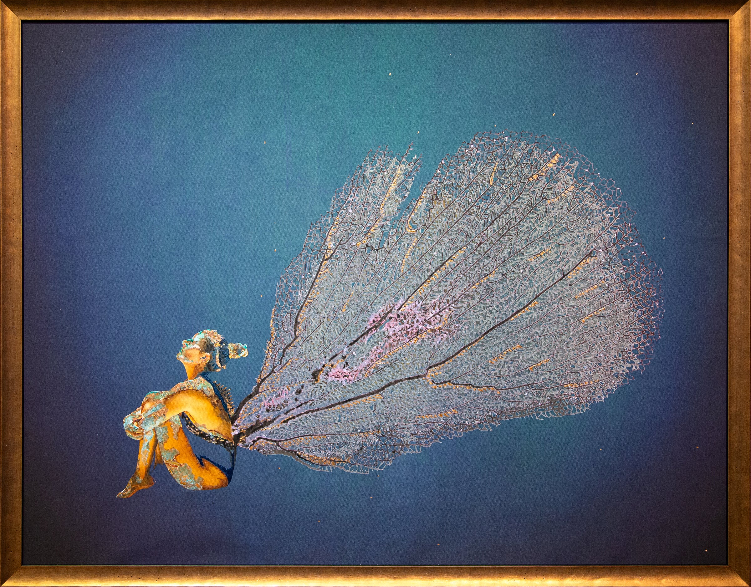 Hand-Embellished Archival Print on Matte Canvas with Copper Leaf, Acrylic, Inda Ink, Pencil and Metallic Thread over Digital Art and Photography (AP) (Framed)