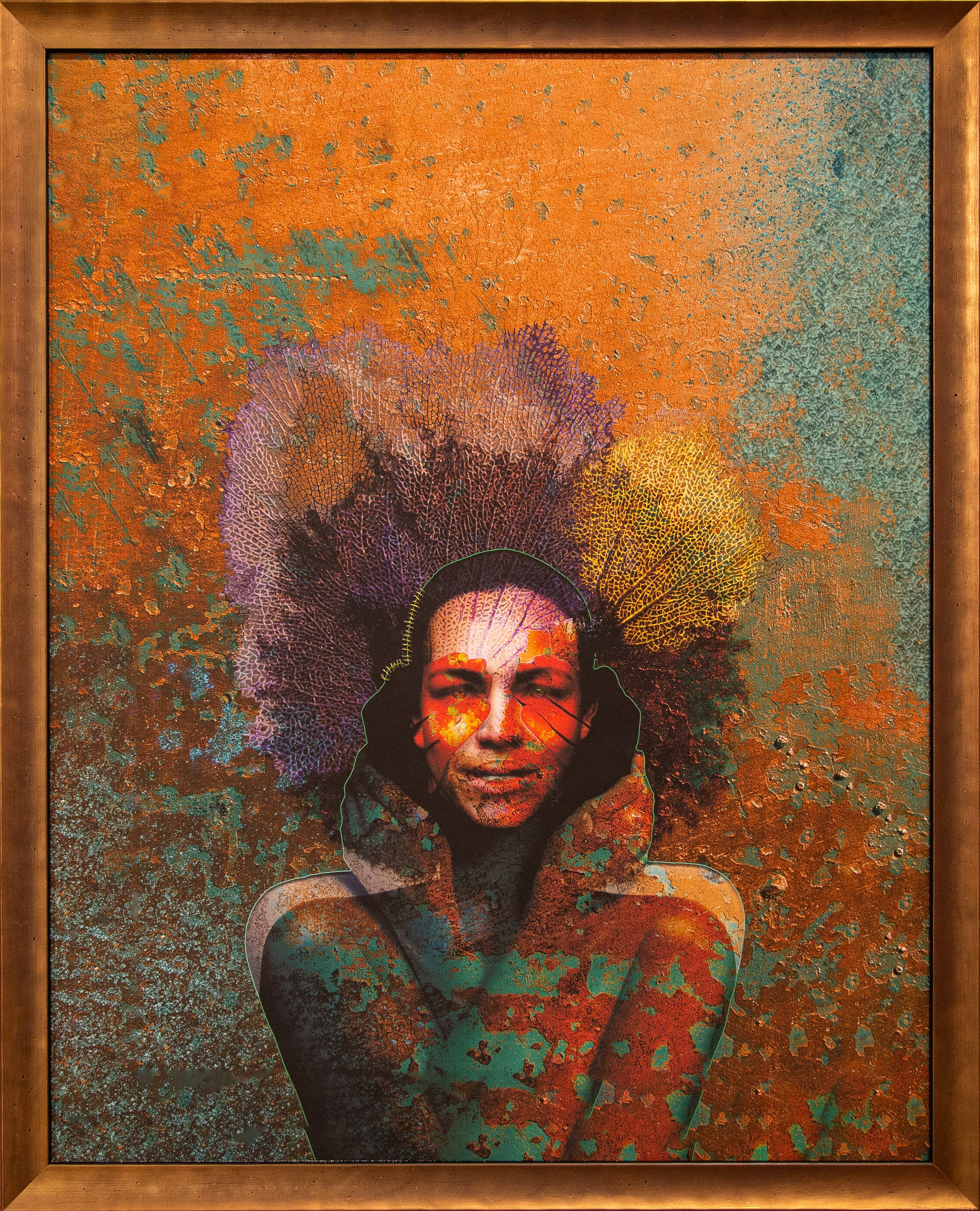 Hand-Embellished Archival Print on Matte Canvas with Iridescent Medium, Acrylic, Pencil and Metallic Thread over Digital Art and Photography (Ed. 1/5) (Framed)