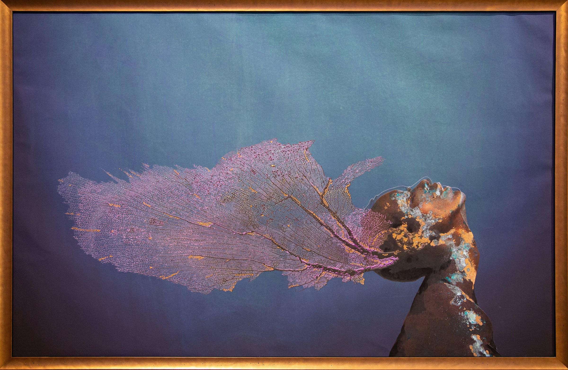 Hand-Embellished Archival Print on Matte Canvas with Copper Leaf with Patina Finish, Acrylic, India Ink, and Pencil over Digital Art and Photography (Ed. 3/5) (Framed)