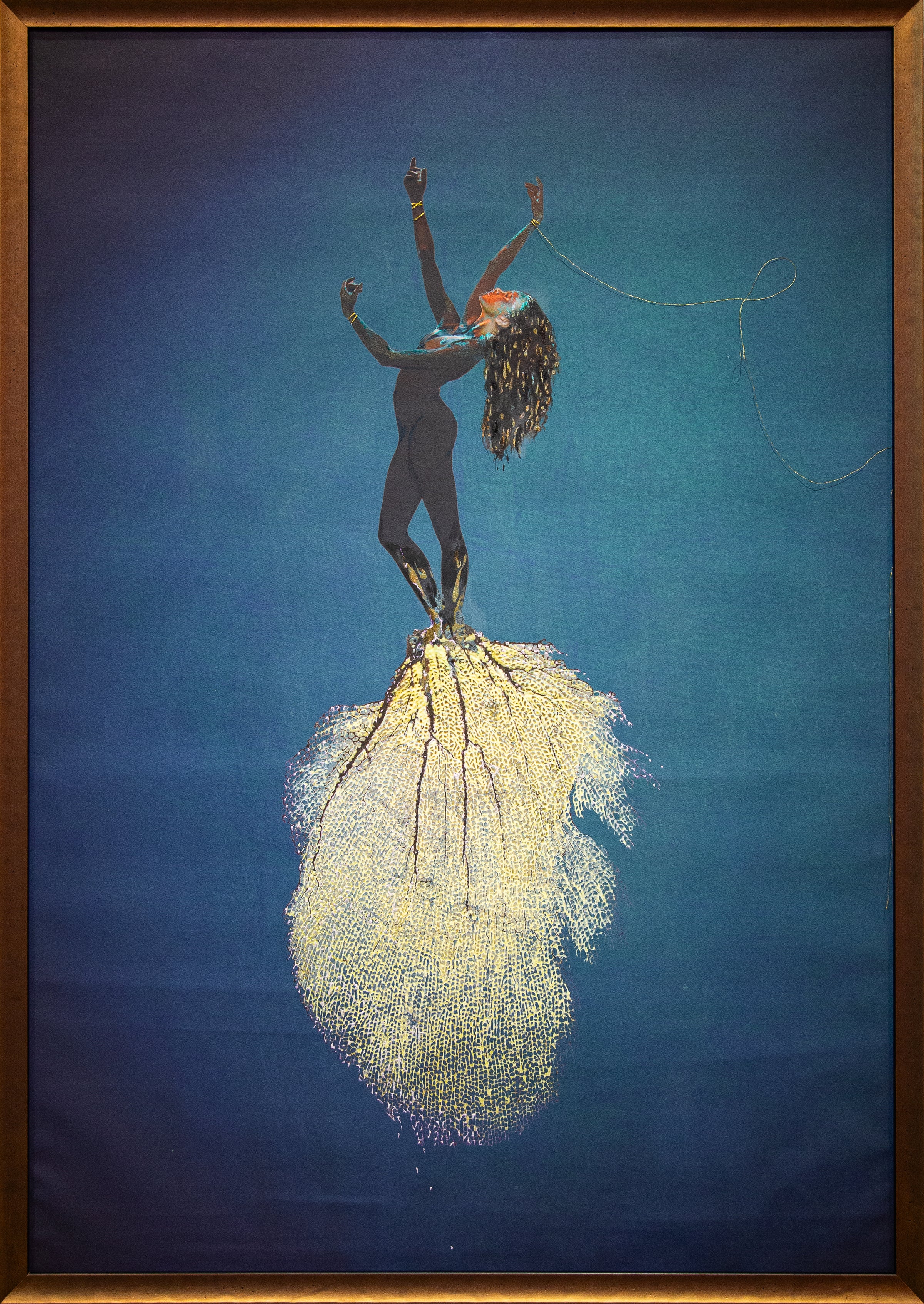 Hand-Embellished Archival Print on Matte Canvas with Copper Leaf, Acrylic, India Ink, Pencil and Metallic Thread over Digital Art and Photography (Ed. 1/5) (Framed)
